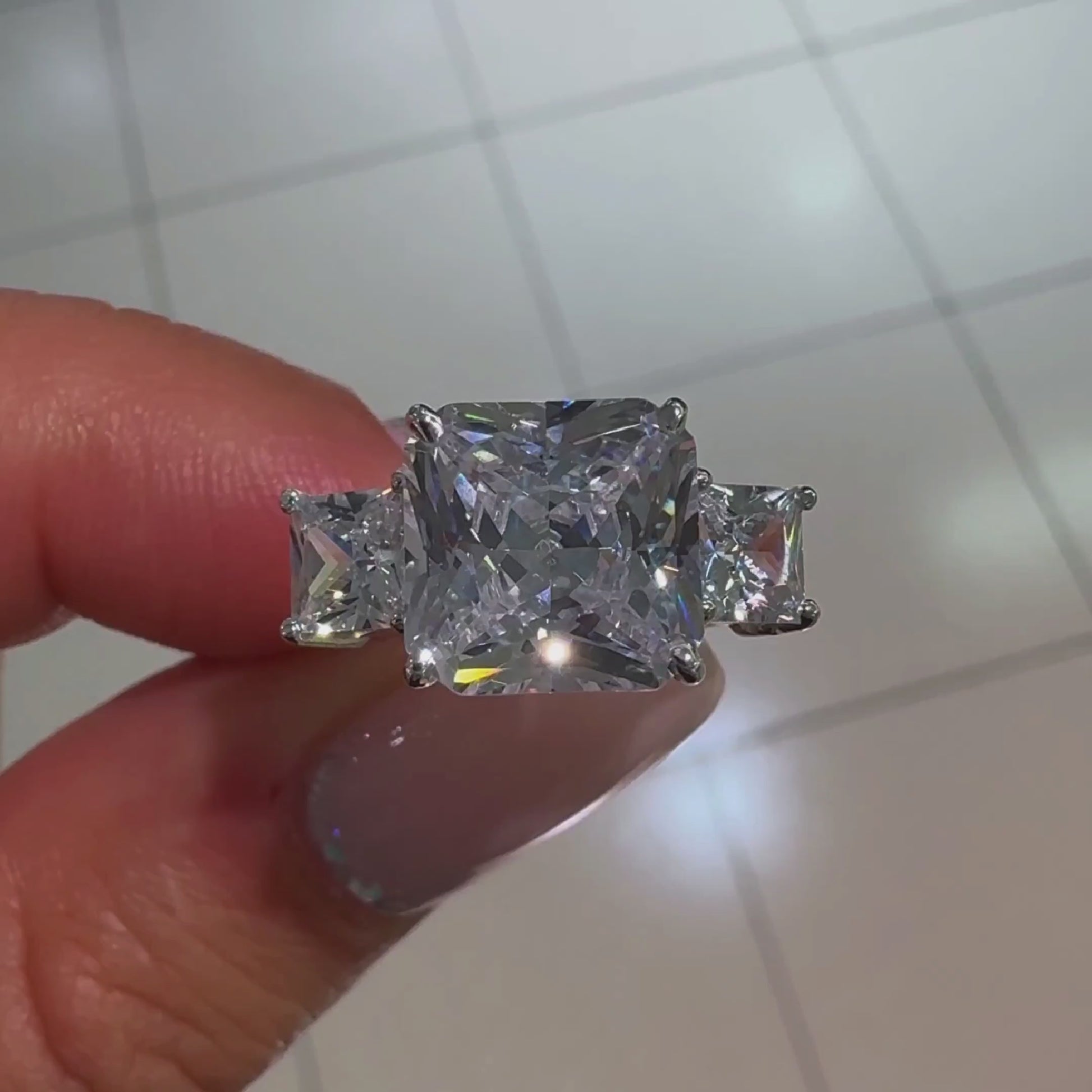 Descubre un brillo incomparable con nuestro anillo de plata adornado con piedras deslumbrantes. La piedra central de 10 mm, acompañada por dos laterales de 5 mm, supera en brillo a los diamantes más lujosos.